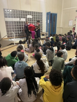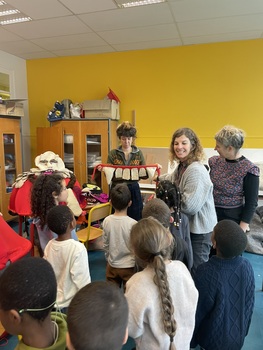 Pour commencer cette quatrième séquence, Anne-Sophie et Vaïssa ont retrouvé les 60 élèves de primaire de l’école Vauban au petit matin. Dès 8h40, elles ont présenté la tête du monstre, qui a suscité de vives réactions auprès des enfants. Ces retrouvailles ont également été l’occasion de rappeler le fil conducteur du projet, en mentionnant la place du caramentran dans le carnaval Mon(s)tre-toi qui sera organisé en fin d’année scolaire.