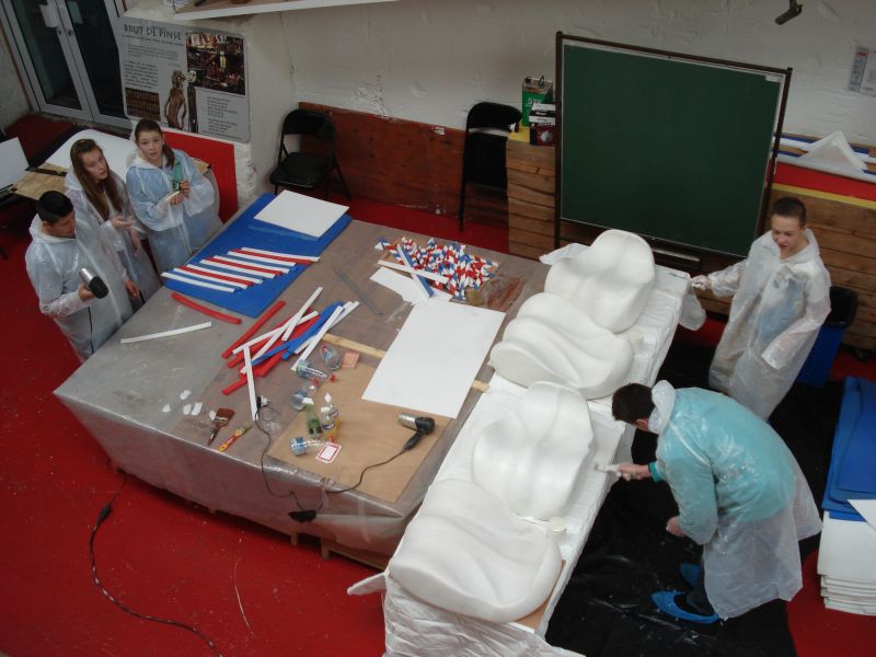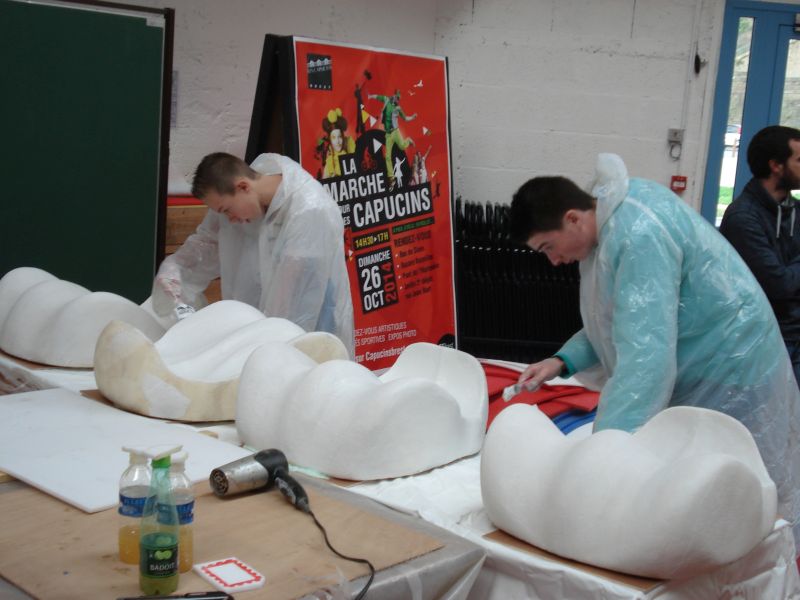 Tandis que d’autres se lancent dans la confection d’enveloppes qui seront perchées à 3m de hauteur sur un carrousel tournant au gré du vent.