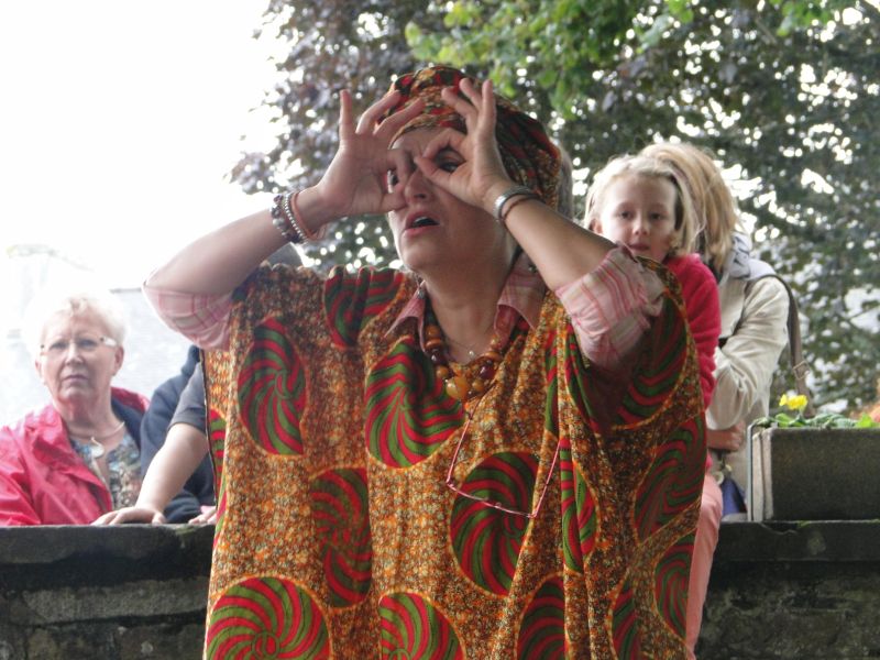C’est dans la cour de l’école de Tréméven que petits et grands s’étaient donné rendez-vous pour assister à la représentation de Anne Sybille Couvert. Il est 15h03 quand l’artiste, vêtue de sa robe africaine fait son apparition par une danse des plus exotiques.