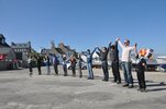 Puis, il est temps de se mettre en route pour la soixantaine de personnes ayant répondu à l’appel de cette balade contée... Une centaine de mètres plus haut, arrêt sur le site de l’héliport de l’île pour se "lancer l’aussière". Chacun attrape d’une main cet énorme bout et forme un grand cercle. On est invité à rentrer à l’intérieur du cercle selon si l’on est de l’île, si l’on se sent molénais, si l’on souhaite y venir passer sa retraite...