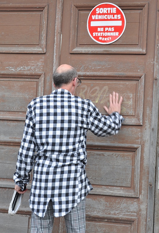 L’image initiale tout d’abord. Celle d’un homme qui lave une vitre. La vitre du coiffeur « Coiffure L’Hostis », rue Jean-Marie Le Bris. Il examine, lave et racle cette surface vitrée en silence. Enfin non (car je me suis tout de même engagée plus haut à relater les faits) pas en silence. Il y a dans la sono mobile qui l’accompagne une voix off (pourquoi ne dirait-on pas ici « on ») qui proche de Claude (l’homme qui lave la vitre), foncièrement très proche de lui, déclame des ritournelles que l’on ne saurait dire si elles sont d’une naïveté sans nom, d’un non-sens grotesque ou d’une sagesse indescriptible.