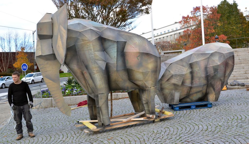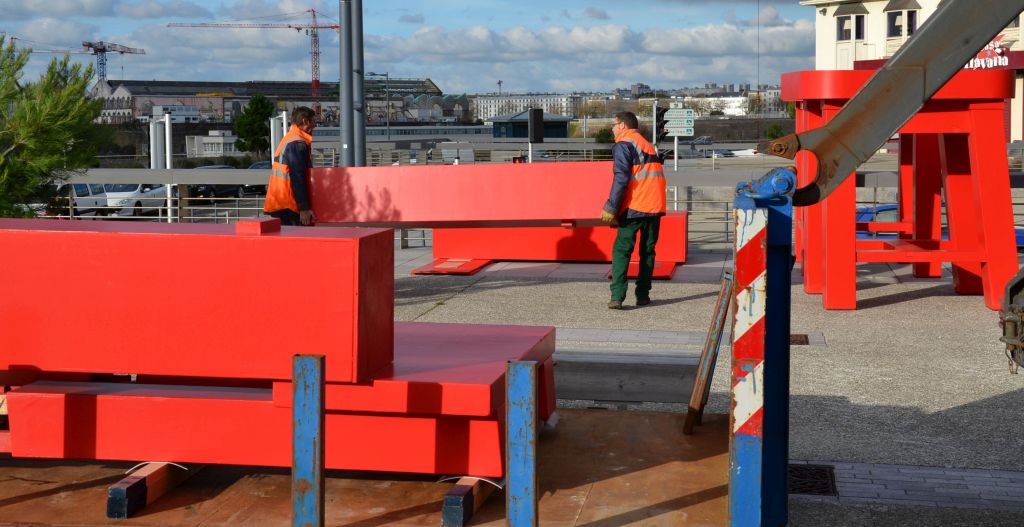 le montage par les techniciens de la ville de Brest et du Fourneau