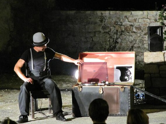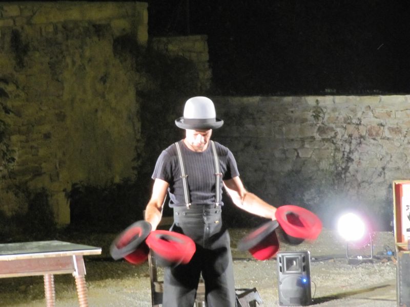 Ce type doit être né avec une balle au bout de chaque doigt et 5 chapeaux sur la tête. Il manipule les unes et les autres avec une précision qui tient de la magie. Et en parfaite synchronisation avec le 33 tours qui tourne sur sa platine vinyle.