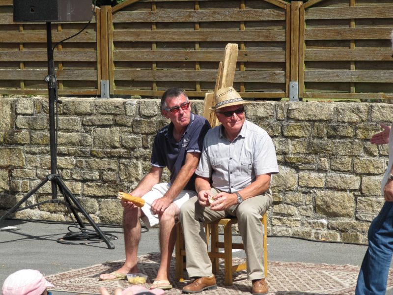 A peine sorti de création, le spectacle Maître Fendard (ah ah ah) a été joué pour la 1re fois en public dans le cadre des RIAS. Michèle Bosseur et Claude Morizur, codirecteurs du Fourneau, ont tenu à marquer cette naissance artistique et ont offert à la compagnie un petit cadeau. Un kit complet pour faire des châteaux de sable et permettre ainsi au brillant avocat de poursuivre sa quête de vérité durant toute la vie de son spectacle, à la rue ou à l’ombre des chênes.