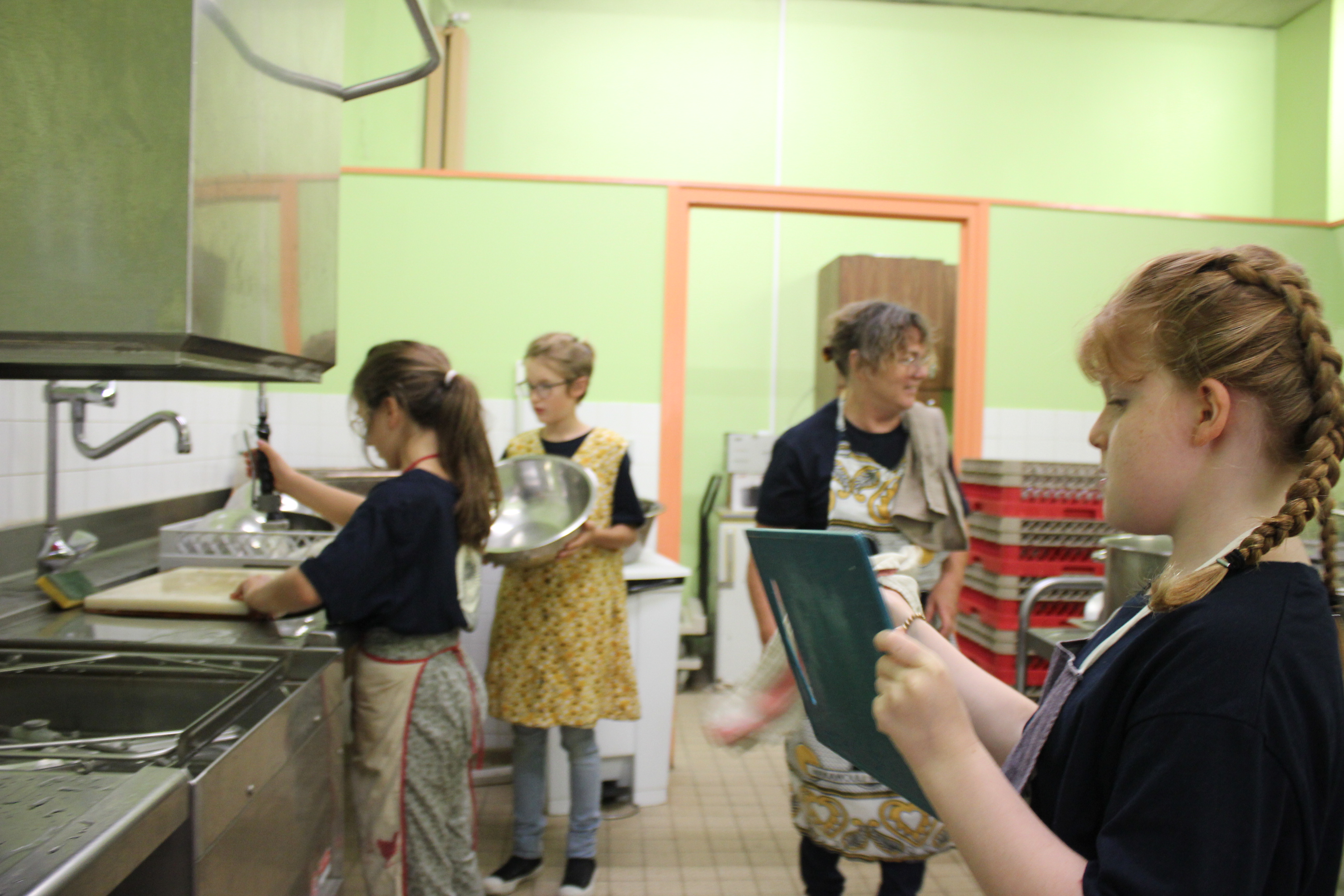 Après l’apprentissage du fonctionnement de la douchette et du lave vaisselle professionnel, la plonge n’a plus de secret pour nos petits commis.