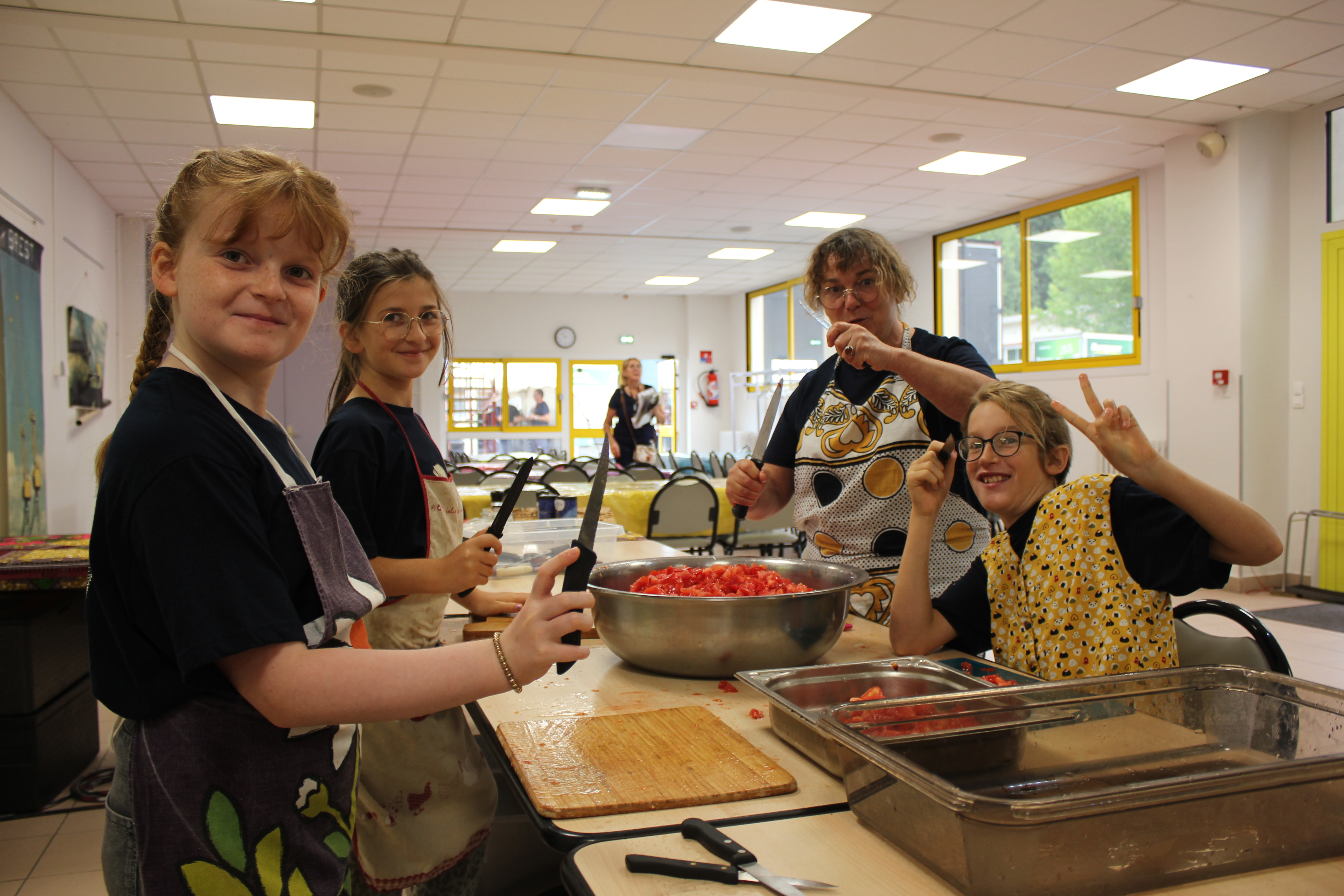 Pendant ce temps, Dominique s’affaire avec Léa, Appolonia et Naëttann en cuisine.