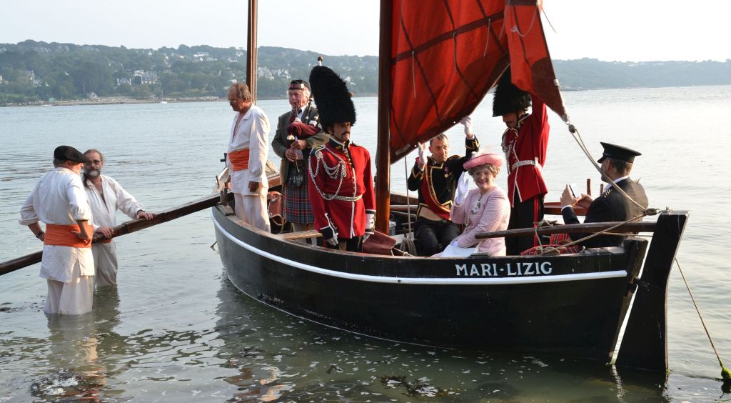 C’est après une journée remplie d’émotions et d’échanges entre la Cornouaille et le Léon et escortée par le bagad de Plougastel que la Reine de la "Frangleterre" quitte son territoire à bord de la Mari Lizig.
