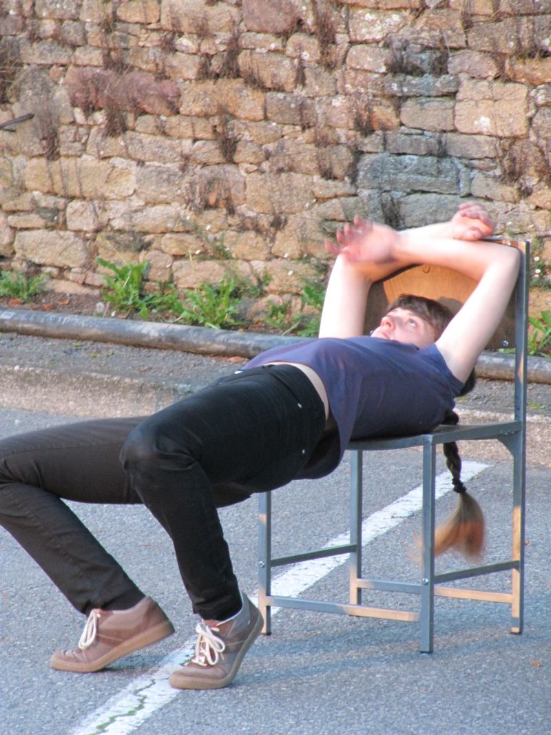 Il suffit de traverser la rue pour découvrir une autre place, bordée cette fois par l’Isole, une autre des rivières qui traverse la ville de Quimperlé. Ici aussi le public est au rendez-vous mais la chorégraphie de La débordante Compagnie se joue à même le bitume.
