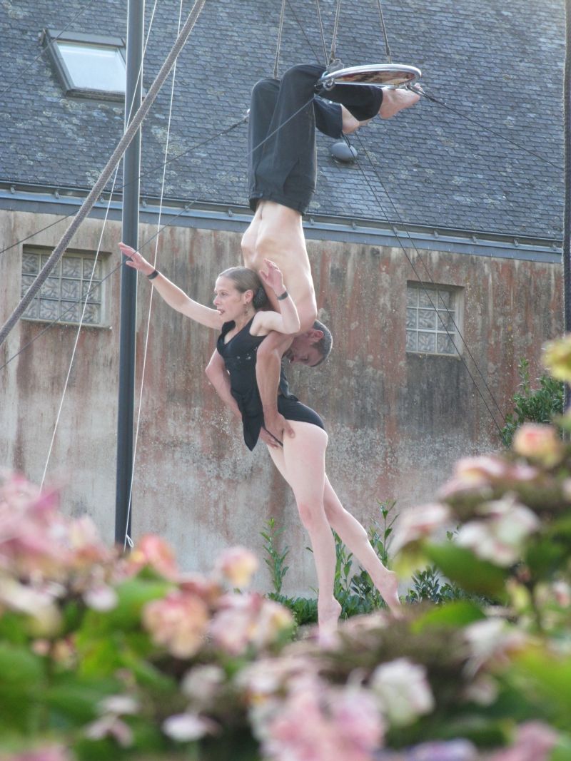 Les acrobaties gracieuses se succèdent, sur un fil ou à bout de bras, mêlant puis séparant ces 2 êtres dans une chorégraphie amoureuse en plein ciel.