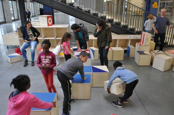 Des temps d’ateliers étaient organisés par Le Fourneau afin d’expérimenter le mobilier ludique avec différentes personnes. Encadrés par Léna, en service civique au Fourneau, ces ateliers avaient pour but de tester l’appropriation du Grand Jeu et de ses règles par les plus petits comme par les grands !