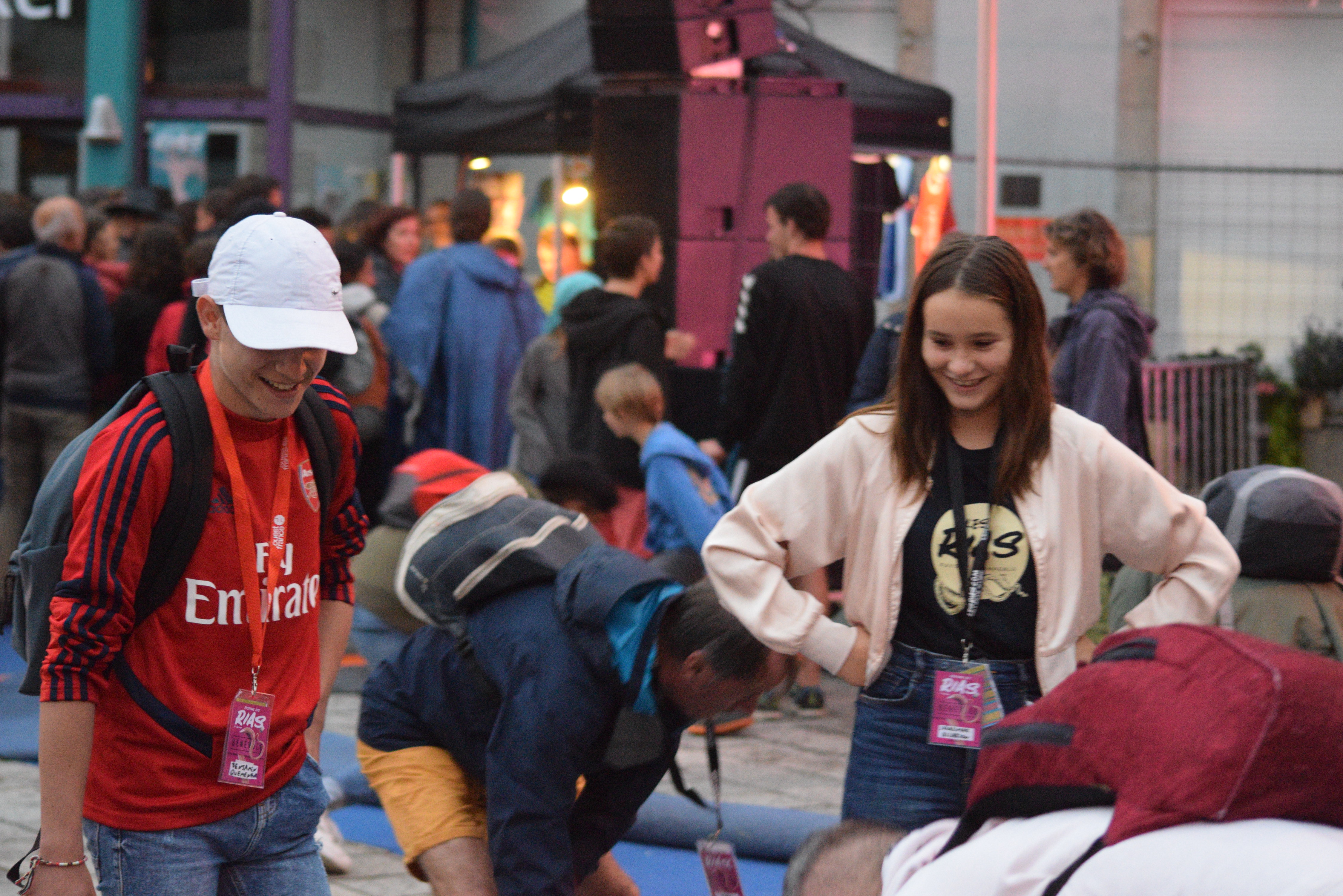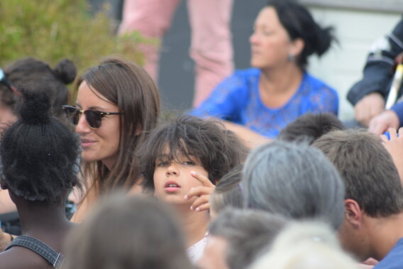 Parmi la foule, des petits curieux s’installent pour assister au spectacle "Accroche-toi si tu peux" de la compagnie "Les invendus", jonglerie de deux félins, tout en douceur.
