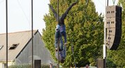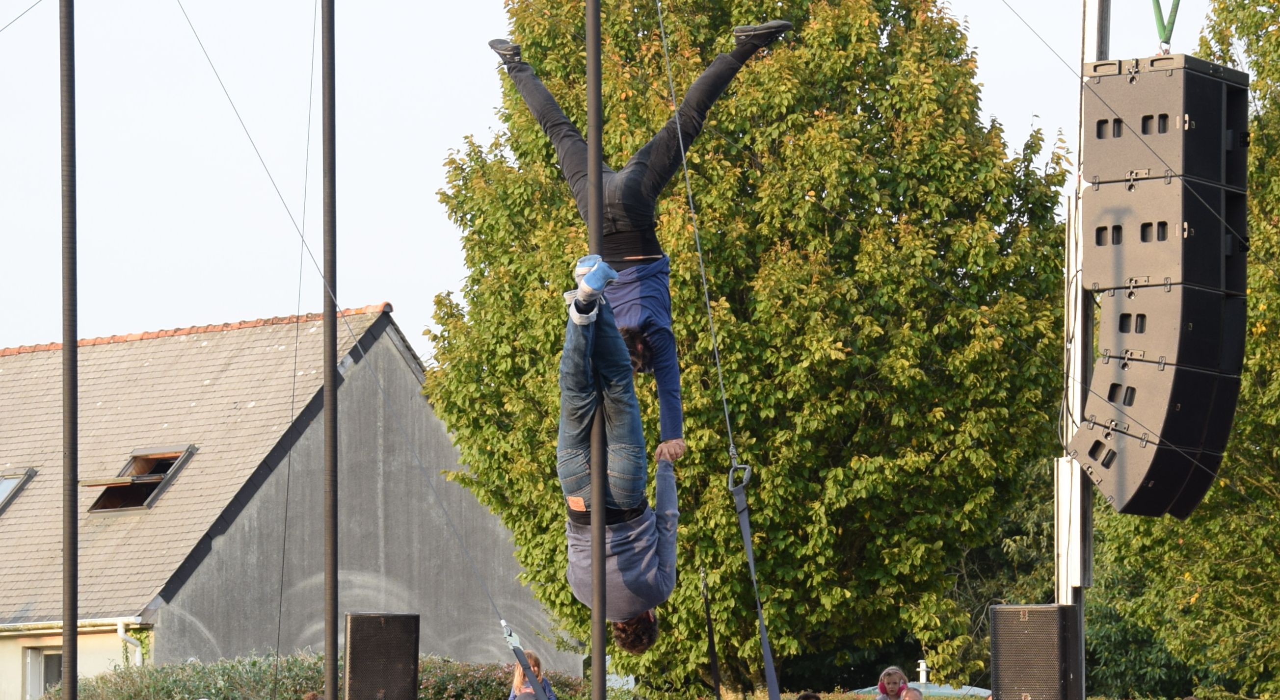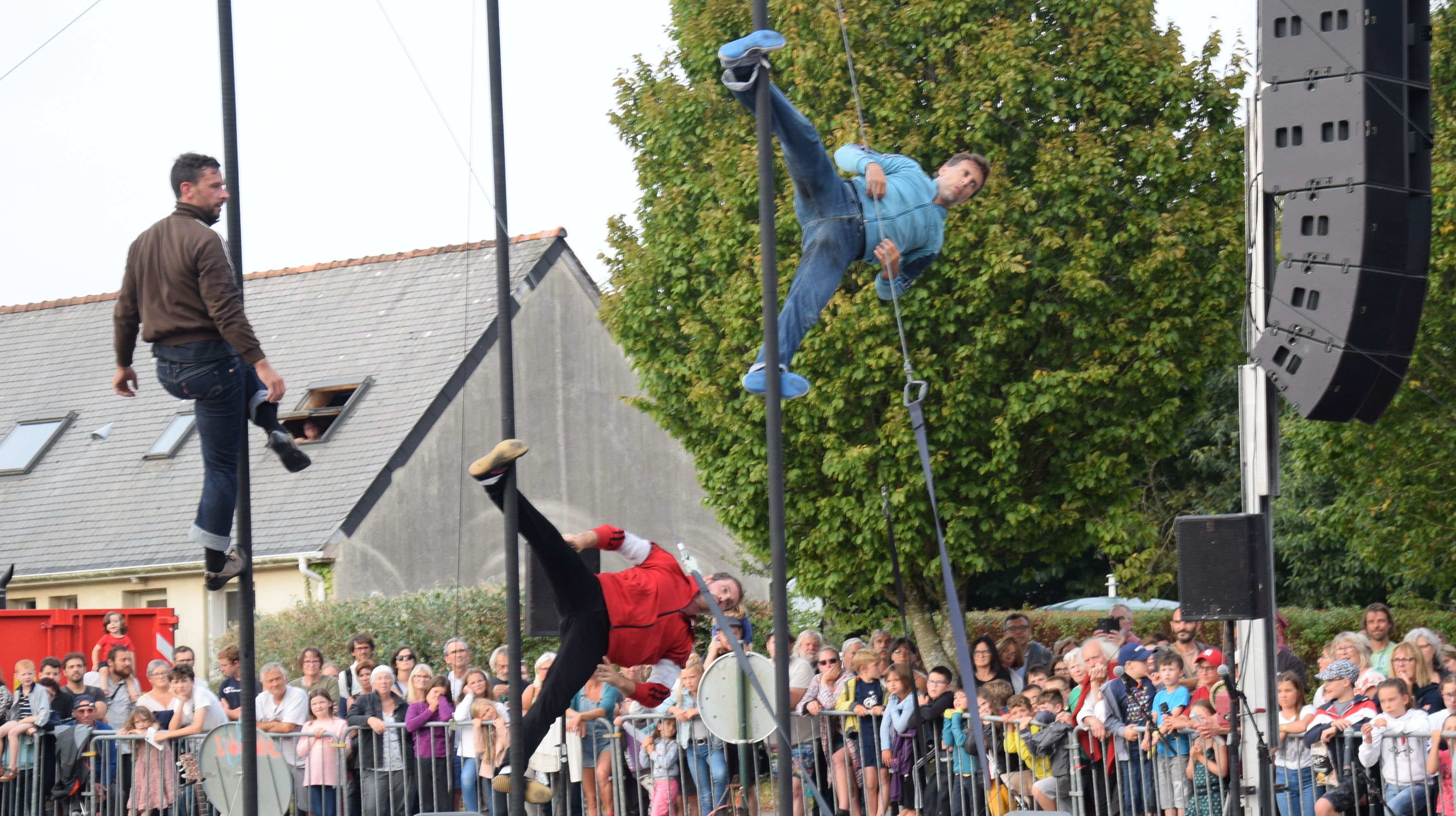 Trois mâts chinois s’élèvent sur la place de la mairie de Locunolé pour accueillir les facéties du collectif Entre Nous…
