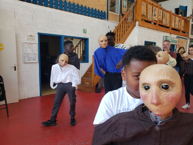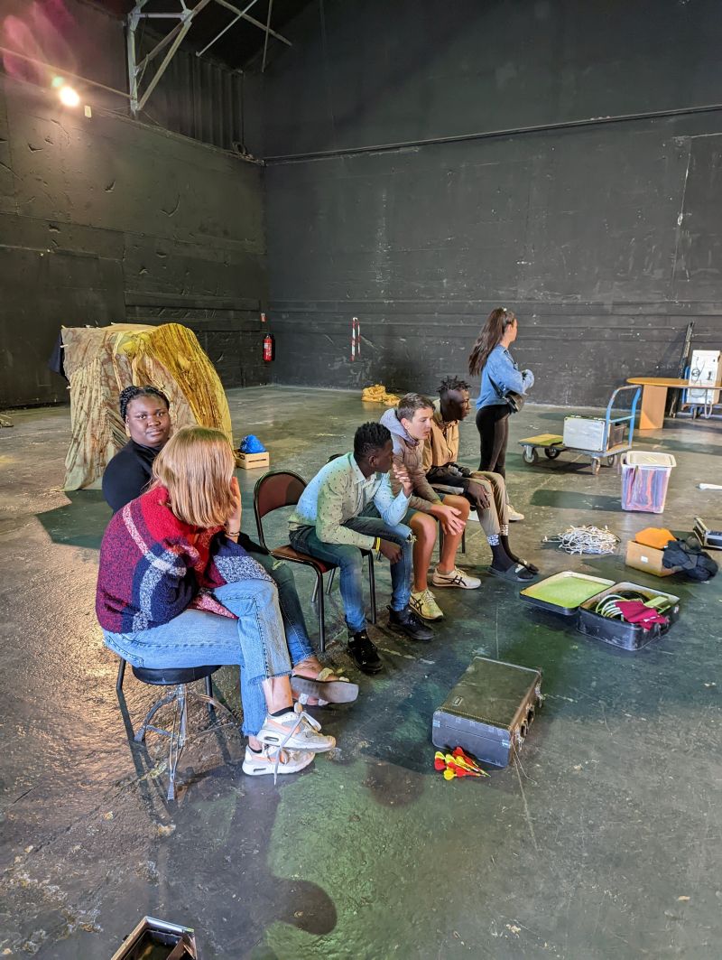 Samedi 1er octobre 2022, le festival est lancé ! Réveil matinal pour les jeunes du CDEF. Départ de Brest à 9h pour assister au spectacle Kahina. Lucie accueille les deux groupes juste à temps pour les accompagner jusqu’au site de spectacle où les jeunes retrouveront Matthieu et sa marionnette, ainsi que Heini sa complice experte en tissu aérien.