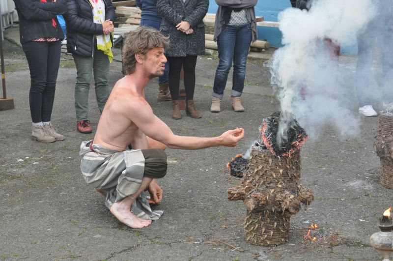 Les artistes invitent d’abord à échanger et faire ensemble, en partageant l’ail sauvage trouvé dans le jardin du conservatoire botanique de Brest, et avec un atelier mouclade où chacun met sa moule à l’édifice.