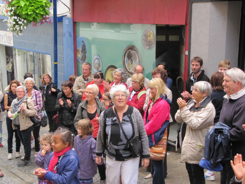 Malgré l’heure matinale (10h) et une dernière averse avant le début des spectacles, près de 500 personnes ont rejoint la ville de Quimperlé qui accueille, cette année, sa 3e édition des RIAS. La programmation est résolument urbaine, répartie entre les vitrines du centre-ville et le quartier périphérique de Kerbertrand. Le propos aussi.