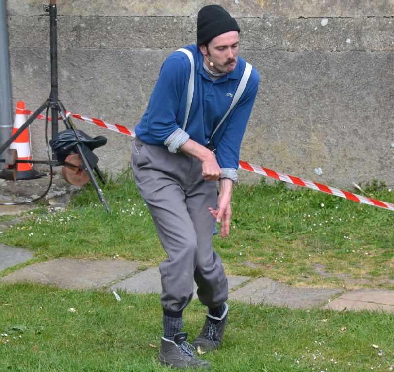 A Molène, samedi 23 avril, à 16h02 pétantes, le public a répondu présent à l’invitation de Gigot Bitume et du Fourneau (avec la complicité de la commune et du comité des fêtes) : sur la petite île, une soixantaine de personnes s’est réunie pour découvrir la première représentation de L’irrésistible charme du BTP, sous le soleil. Ronan Le Fur a su séduire, par son jeu à visages multiples, les habitants et les visiteurs venus parfois juste pour l’occasion.