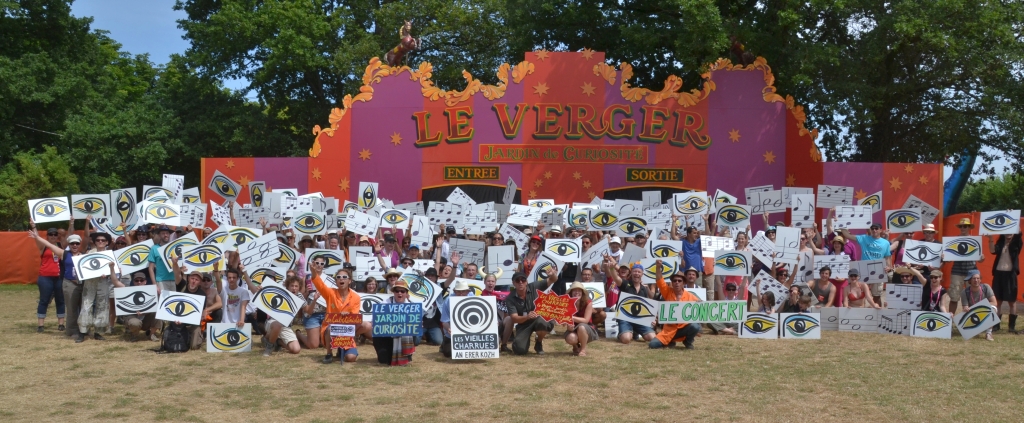 Un, deux, trois, Souriez ! Le top officiel d’ouverture du Verger est donné ce vendredi 19 juillet à 15h33 par les Cubiténistes, d’espiègles photographes accessoiristes pleins de bonne humeur. Ils accueillent les premiers festivaliers enjoués et sur le parvis de ce lieu désormais sacré du théâtre de rue, réalisent le traditionnel rituel photographique.