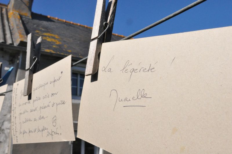 Les cartes de loto griffonnées de rêves, suspendues sur les fils à linge du jardin, ont inspiré un spectateur rêveur... qui a impulsé une lecture improvisée par les spectateurs rêveurs présents. A tour de rôle, et avec des timbres de voix divers, ce sont des rêves de Picardie qui ont résonné dans le jardin de Chez lolotte, sur l’île Molène !