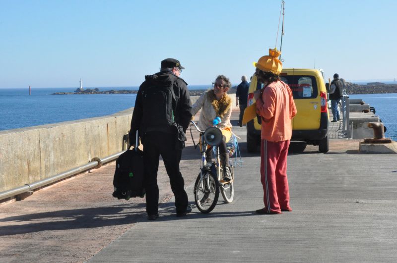 La Françoise et Tourniquette ont ensuite pris le relais pour nous conter le récit en 9 chapitres des 9 jours de collecte : collégiens de Molène et d’Ouessant, associations de couture, de sport, de jeux, rencontres dans les rues, devant la superette ou le bar tabac, jusqu’à celle du jour avec les passagers de la Penn ar bed.