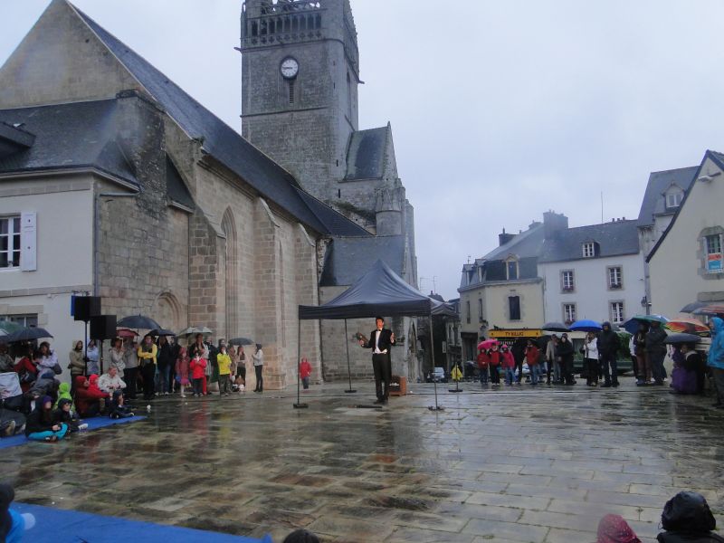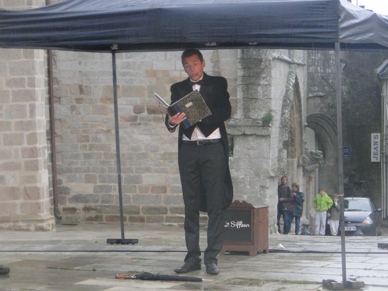 C’est vêtu de son costume queue de pie que se présente Le Siffleur devant le public de Quimperlé. Le rendez-vous était donné à 20h20 devant la magnifique église Saint-Michel.