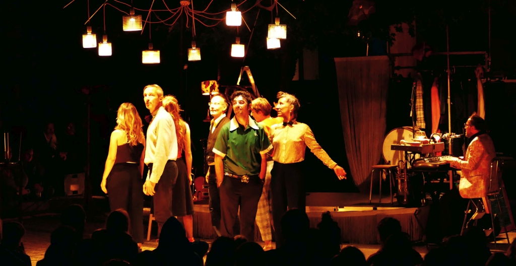 Le spectacle du Petit Théâtre de Pain est une séance de pilates pour zygomatiques, un grand bol d’air pour méninges. Ce cabaret musicothéâtral décalé, tout public et tout terrain, offre un enchaînement de partitions dansées et de ritournelles absurdes. Le Grand Bancal est une célébration foutraque et bricolée, une balade poétique au pays de « ce qui nous lie », une ode à l’amitié et à l’espoir.