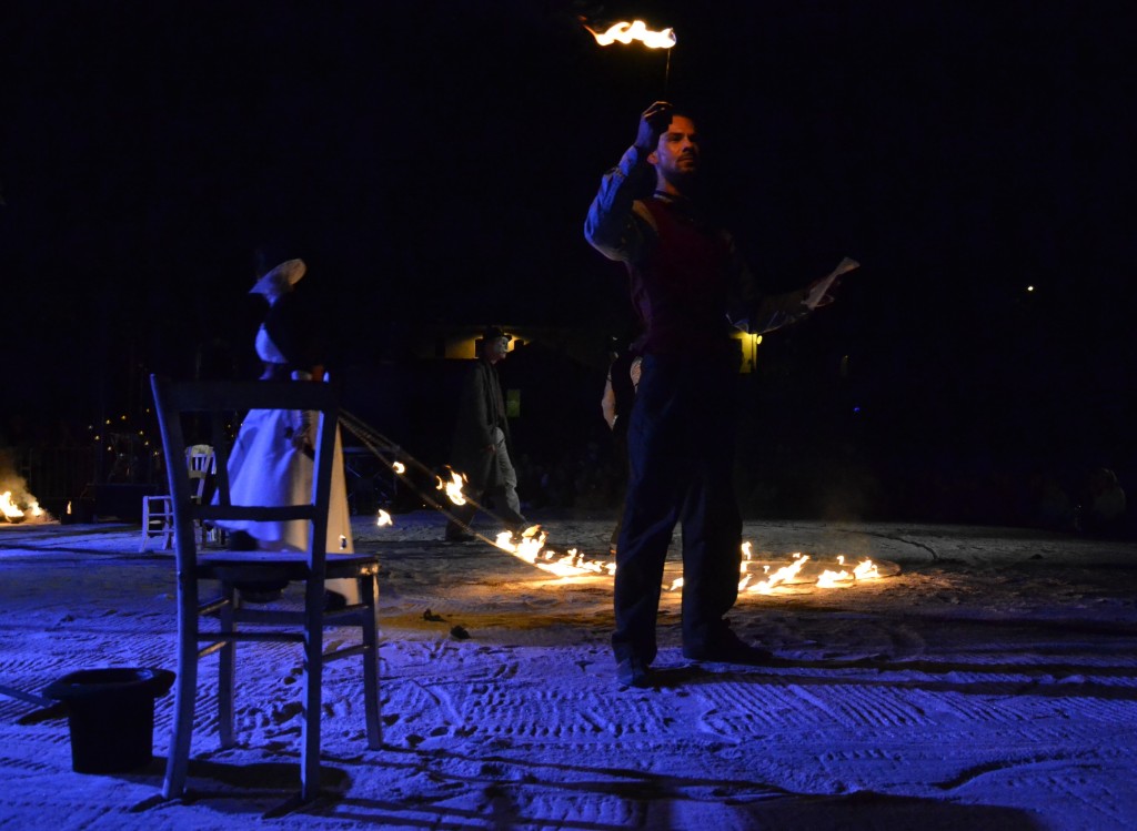 Il est 21h43 lorsque que le show commence, tout feu tout flamme, devant une scène où sont aménagés estrade avec piano, accordéon, tables et cages. L’amour d’un jeune homme pour une veuve qui ne cherche qu’a rejoindre son défunt mari sont exprimé par des effets pyrotechniques des plus fascinants. Les chants somptueux viennent accompagner la représentation qui au fil des minutes, monte en température. La piste s’embrase pendant que les artistes s’embrasse au rythme des arts du feu qui viennent illuminer toute la ville basse de Quimperlé. C’est un public chaud comme la braise qui se lève pour acclamer la performance de la compagnie Bilbobasso, qui a conclu la première soirée du week-end de la plus belle des manières.