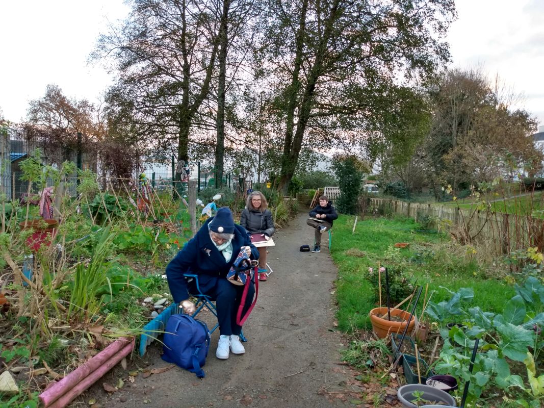 Cette seconde semaine de résidence commence sur les chapeaux de roues pour les enfants de CM1-CM2 associés au projet. En effet, suite à la visite du quartier réalisée avec Mathurin la semaine précédente, les enfants ont sélectionné des espaces de leur quotidien qu’ils apprécient particulièrement. C’est ce lundi 2 décembre, qu’ils ont pour mission de les esquisser sur le papier. Pour enrichir cette matinée de (re)découverte du quartier, Mathurin et Maude du Groupe ToNNe ont invité les Urban Sketchers de Brest à venir dessiner avec les enfants. Ce groupe d’artistes se rassemble plusieurs fois par semaine pour "montrer le monde de dessin en dessin, (...) et créer des liens entre croqueurs dans le monde entier."