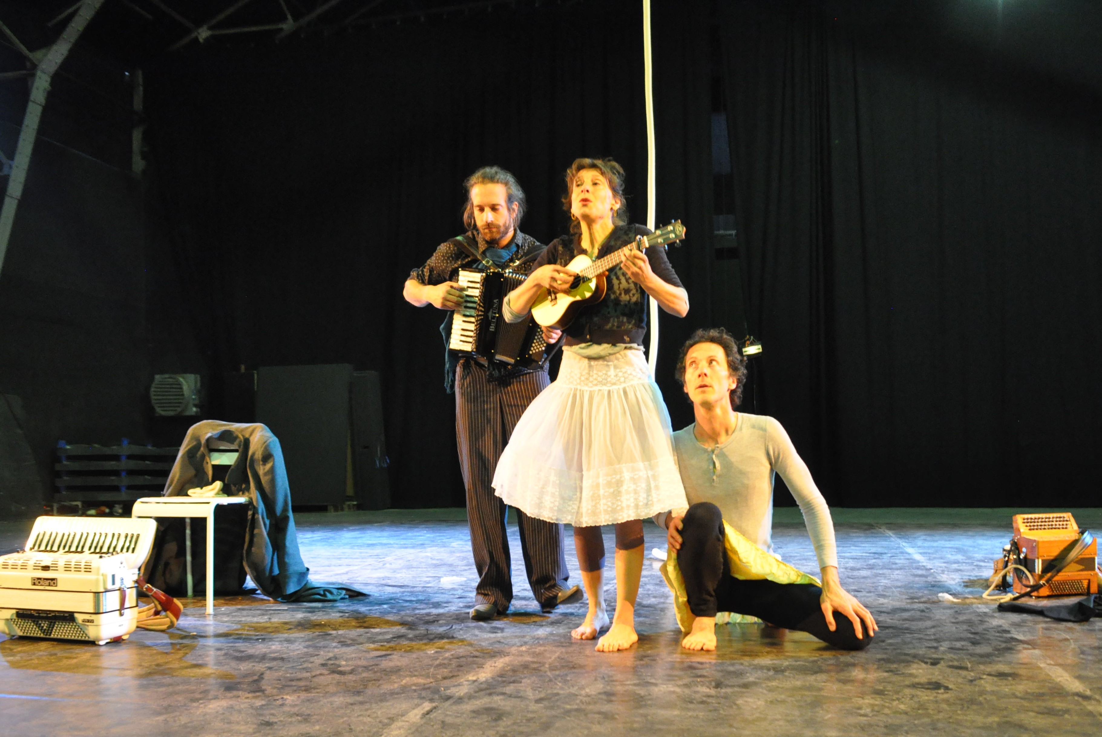 Et puis, mardi 26 mars à 18h32, vient le temps de leur première expérimentation publique : restituer en 20 minutes et quelques l’humeur et la complicité naissante de leur trois personnages, leurs premières tentatives acrobatiques, leurs envies musicales, et l’étonnant paradoxe entre la fragilité et l’habileté de leur corps et leurs instruments.