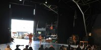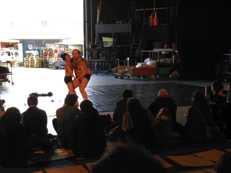 Il est 12h32 et quelques secondes.... La porte de la grande halle du Fourneau s’ouvre sur Olivier Martin-Salvan, artiste comédien associé au Quartz.