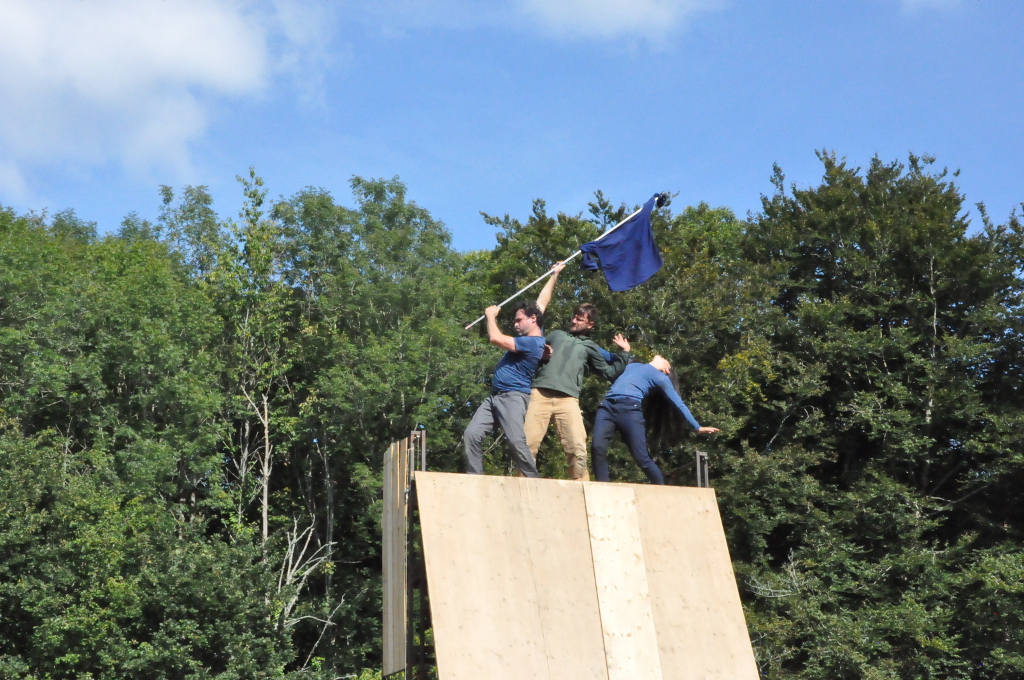 Construction-déconstruction, turbulence des sols et des verticales, Mind the Gap propose un espace architectural aux équilibres précaires. À son contact, trois individus évoluent entre prudence, audace et élans de solidarité salutaire. Au cœur de cette avalanche matérielle, les voici qui plient, ploient, chutent et se rattrapent. La matière s’anime et les corps se remettent à danser.