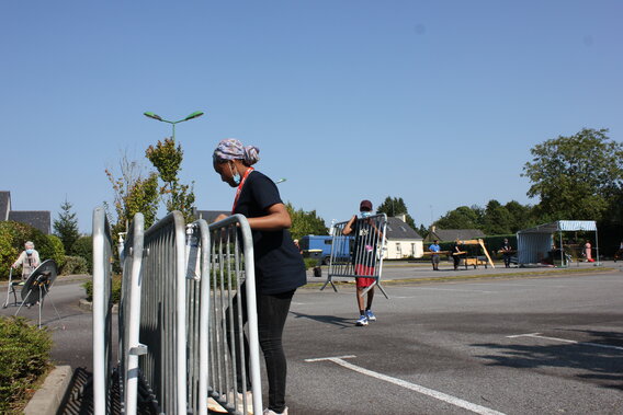 Un long trajet depuis la salle des fêtes qui n’effraie pas nos deux courageuses bénévoles. Mais notre travail n’est pas terminé, loin de là. Nous passons maintenant sur la mission d’accueil.