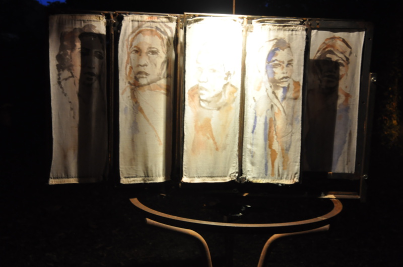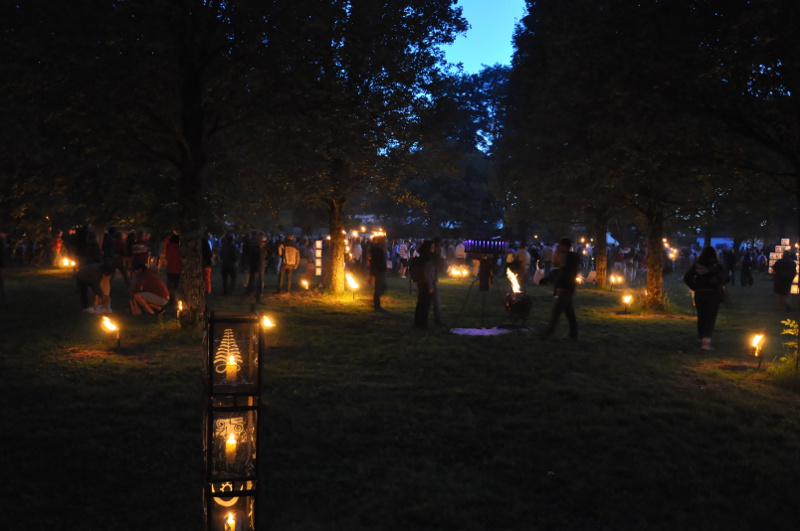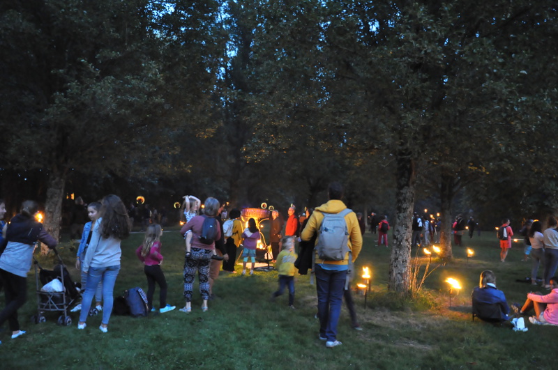 Invitation au voyage à la nuit tombée dans le parc François Mitterrand de Mellac avec la compagnie Carabosse, qui au gré des lueurs vacillantes du feu donne à voir des visages du monde entier…