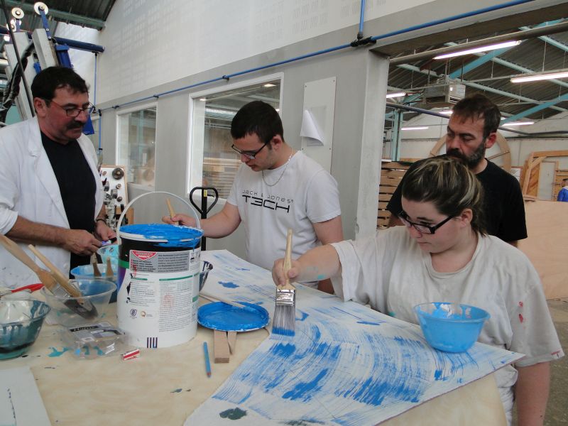 Les élèves de peinture prennent la suite des élèves de la section bois pour la fabrication d’un décor géant