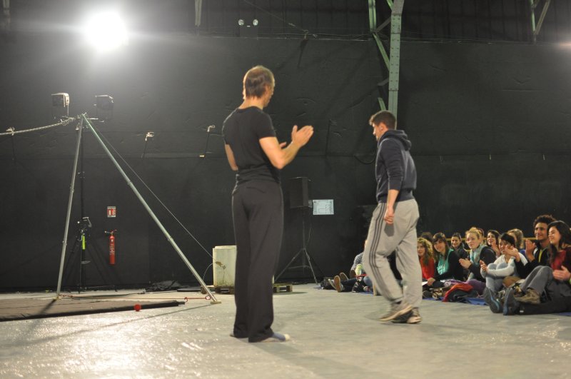 Mardi 11 mars 2014 à 11h11, une vingtaine d’étudiants en S.T.A.P.S viennent rencontrer la compagnie Fil de Harp dans le cadre de leur résidence de création pour le spectacle Lift off !. Pete et Barbara montrent aux étudiants un extrait du spectacle en cours de création sous le regard avisé de Vika (regard extérieur). S’ensuit un temps d’échanges entre les étudiants et la compagnie.