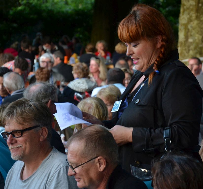 A l’heure du repas, la compagnie On Off a surmonté les obstacles, slalomé entre les nombreuses tablées afin de délivrer les SMS musicaux dédicacés. De quoi ajouter de l’ambiance au Pique-Nique partagé entre les 1200 spectateurs présents.