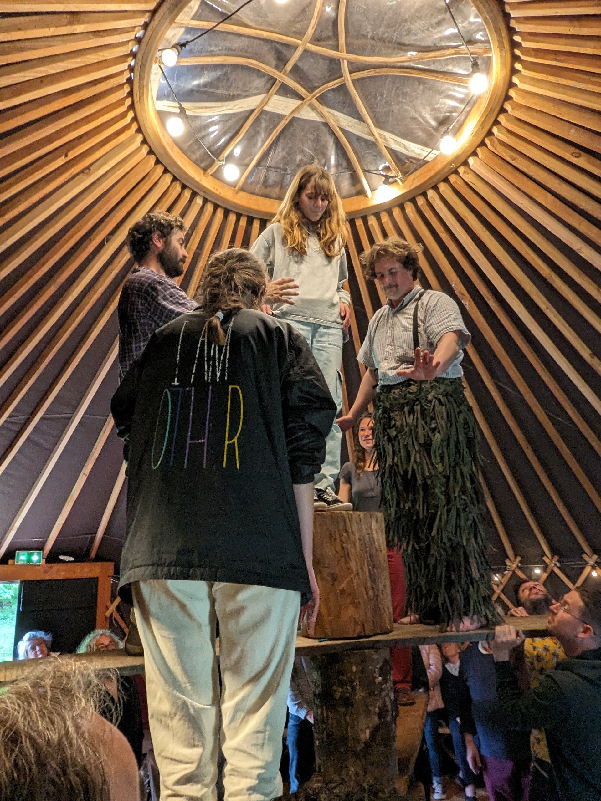 Il a d’abord fallu choisir l’endroit idéal pour installer la yourte, qui sert de lieu de représentation pour ce nouveau spectacle. Le montage a duré près de 3h30 et a été possible grâce à l’aide de 6 bénévoles, qui découvraient le montage d’une tente mongole pour la première fois.