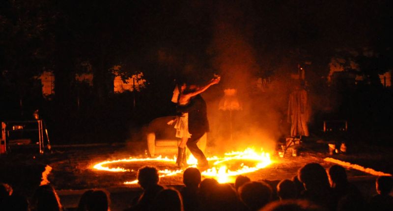 A 22h02, une fois la nuit tombée, la compagnie Bilbobasso enflamme le Pique-Nique et entraîne le public dans une série de tableaux palpitante sur la vie conjugale, avec Amor. Petits et grands sont éblouis par la performance des deux artistes qui jouent avec le feu sous toutes ses formes : braises, flammes, artifices... Un duo qui vire parfois au duel explosif, au son du tango et du rock’n’roll !