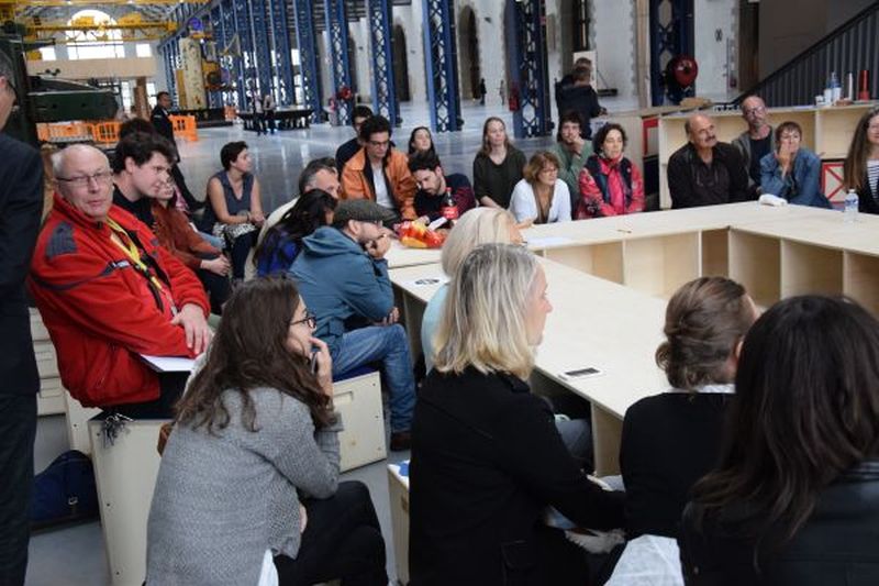 Une cinquantaine de personnes étaient présentes autour de la table lors de cette première rencontre. Certaines avec un rapport quotidien au lieu, d’autres usagers du week-end, ou encore nouveaux arrivants brestois, curieux de cette démarche. Plusieurs associations brestoises étaient représentées, mais aussi l’UBO avec une vingtaine d’étudiants en Master Management du Spectacle Vivant, la Mairie de quartier des Quatre Moulins ou encore le service culture de Brest Métropole et la direction générale de la SPL (Société Publique Locale) Les Ateliers des Capucins. Un délégué de la société chargée du gardiennage et de la sécurité des Ateliers des Capucins participait également à la réflexion.