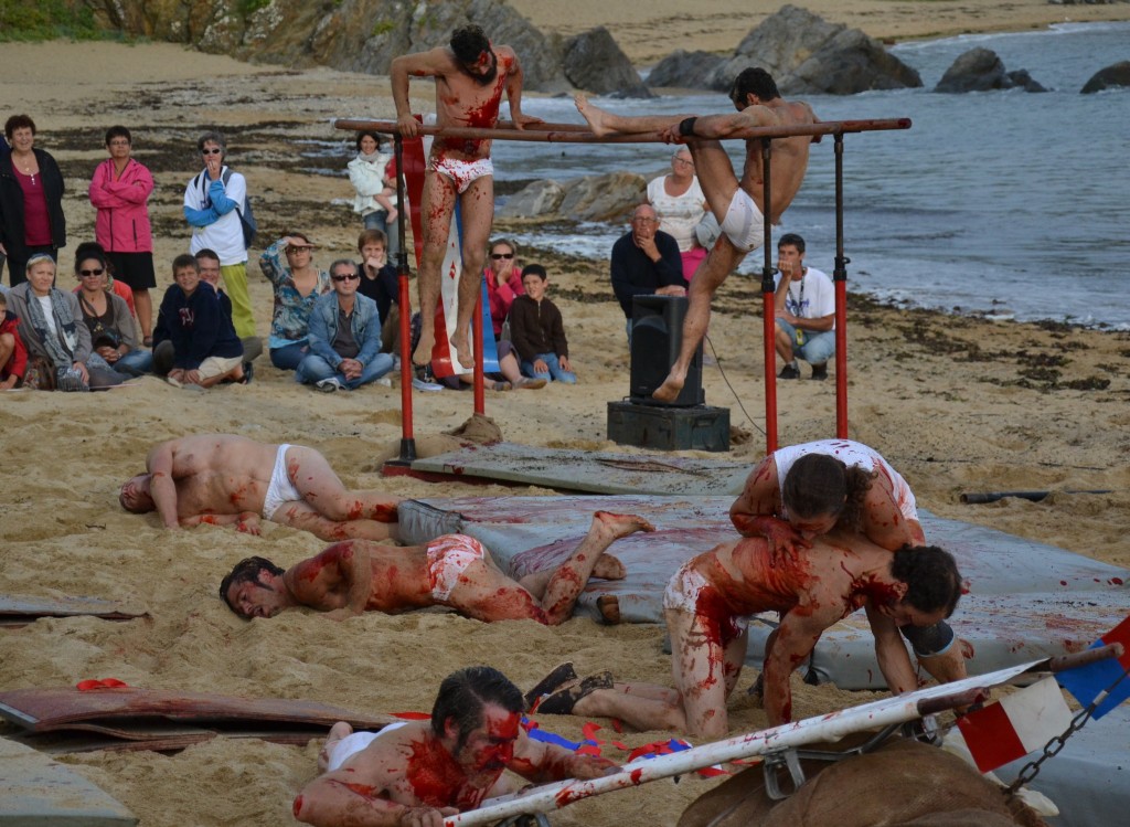18h18 – Rendez vous au Pouldu avec les Urbaindigènes pour une petite leçon d’histoire militaire. Et Madame Yvonne compte bien la réécrire, l’histoire. Avec sa bande de 10 gymnastes qu’elle mène d’une discipline de fer, elle va s’atteler à recréer les grandes défaites de l’armée française, d’Alésia à l’Indochine, sauf qu’elle va les transformer en victoires.