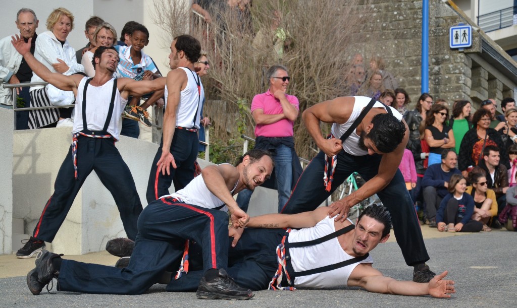 Arrivé en bateau sur la plage des grands sables, le « régiment » commence son entraînement sur le sable sous les regards de presque 2000 personnes. Des barrières aux fenêtres, c’est une véritable marée humaine qui envahit la ville. Et pourtant, aucun problème notoire ne survient et chacun est prêt à faire des compromis pour assister à l’évènement. Les Urbaindigènes, eux, transforment les rues et les immeubles en terrain de jeu (ou en champ de bataille) dans lequel ils évoluent avec aisance démontrant ainsi leur incroyable capacité à s’adapter à tous les environnements et tous les publics dans le plus pur style de la fameuse gymnastique naturelle si chère à Madame Yvonne.